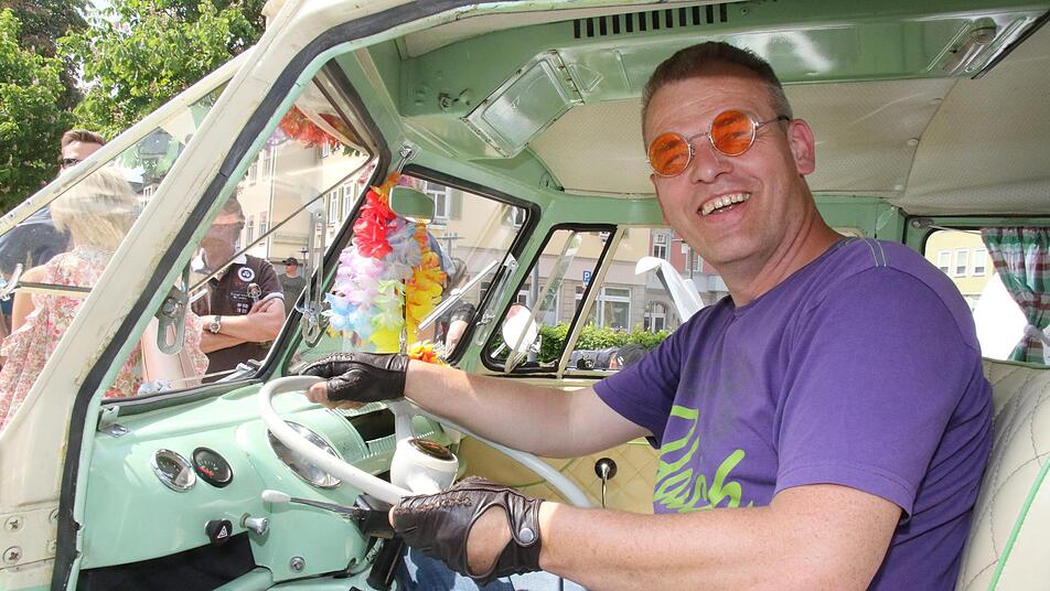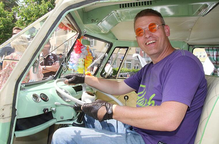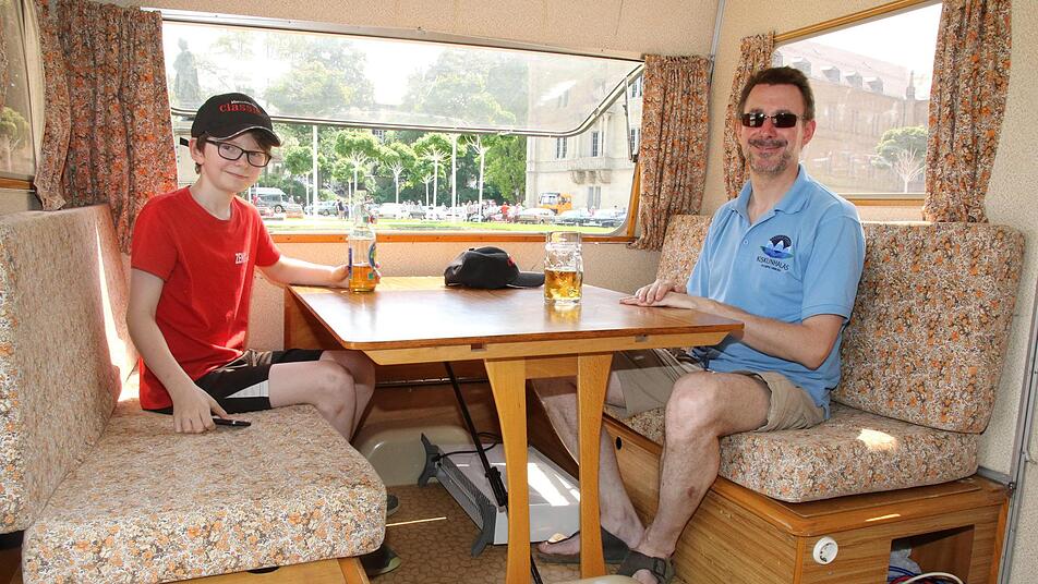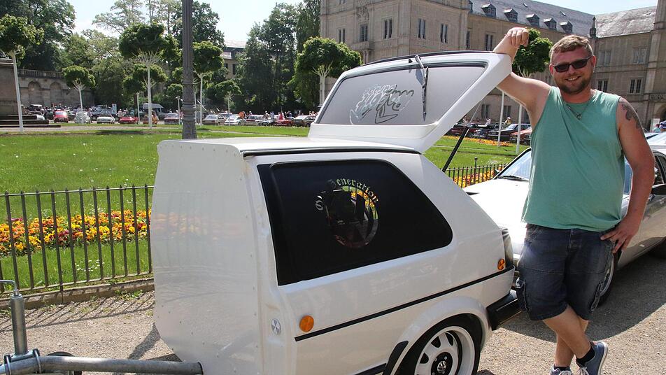 "Weil ichs kann" hatte Peter Exner aus Amberg einen 2-er Golf kurzerhand in einen Anhänger verwandelt. Vier Monate hatte der Kfz-Meister daran gebastelt, alles ausgebaut und nur die Originalachse belassen. Er wollte einen außergewöhnlichen Anhänger, in dem auch der Kinderwagen Platz hat und hat nun diesen Hingucker entwickelt. TÜV-Gutachten musste sein und der Hänger darf auch 100 km/h schnell sein, erzählt Peter Exner. In seinen T 1 könne er nicht einfach einsteigen und losfahren, erzählte Frank Kruscha. Er ist stolzer Besitzer eines Bulli T 1 mit Safarifenstern.