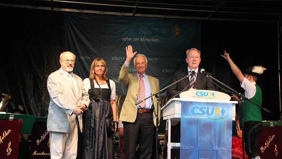 Doch Edmund Stoiber verspätete sich, und der Regen dauerte. Staus auf der Autobahn, ein Unfall bei Ebersdorf und die Coburger Baustellen hielten den ehemaligen bayerischen Ministerpräsidenten auf. So lange mussten CSU-Kreisvorsitzende Birgit Weber, Hans Michelbach, der Landtagsabgeordnete Jürgen Heike, Bezirkstagsmitglied Elke Protzmann und die Roßfelder Musikanten überbrücken.