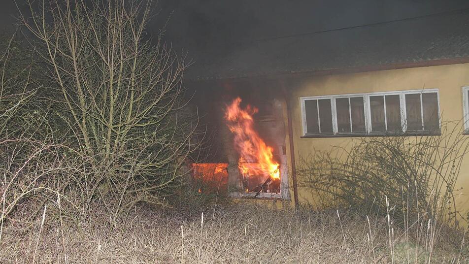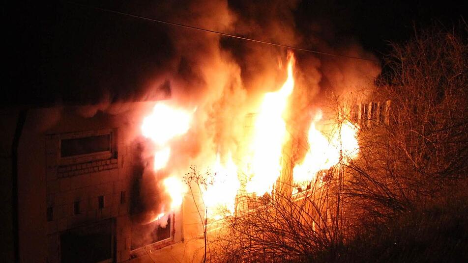 Beide Ehepaare näherten sich dem Objekt, aus dem binnen weniger Sekunden meterhohe Flammen aus den Fenstern schlugen und aufs Dach übergriffen. Eilends wurden Notrufe abgesetzt und über die Einsatzzentrale Feuerwehren aus den Landkreisen Coburg, Bamberg und Haßberge alarmiert. So rückten aus Unterfranken die Wehren aus Ebern (mit Leiterwagen), Untermerzbach und Memmelsdorf an. Ebenfalls aus Ebern kamen Notarzt und BRK-Rettungskräfte.