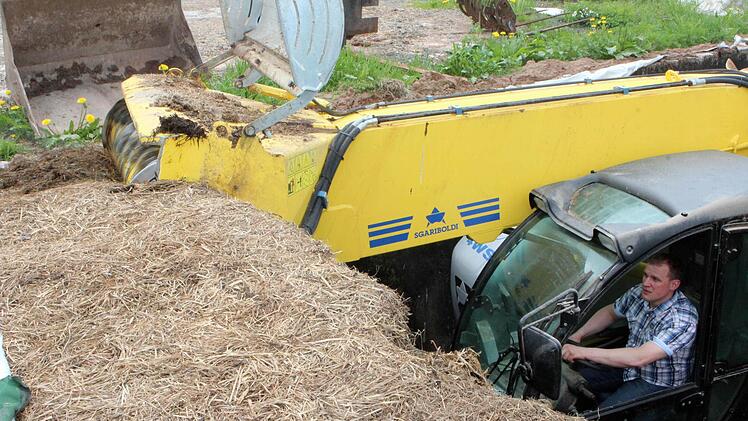 Aber Siegel ist nicht der einzige Bewohner der Kastanienallee in Eicha, der von der Biogasanlage des Landwirtes Sollmann profitiert. "Momentan sind drei Grundstücke angeschlossen, aber durch die Bauarbeiten in der Straße werden es bald acht sein", sagt Sollmann. Denn vor seiner Tür schaufeln bereits Bagger - die Kastanienallee wird saniert. Eine gute Gelegenheit Nahwärme-Leitungen zu verlegen. "Eine Heizungsbaufirma macht die ganzen Facharbeiten und verlegt die Leitungen. Danach wird die Wärme eingespeist", sagt Sollmann.