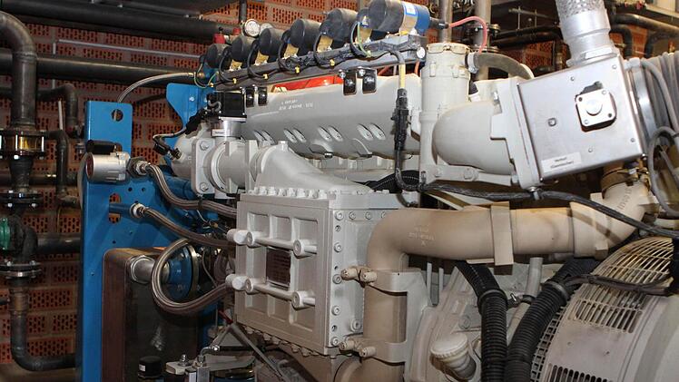 Beim Betreten des Technik raums wird es laut und warm. Eine Treppe führt in den Pumpenkeller, wo die Leitungen für die Nahwärme in der Wand verschwinden. Hinter einer weiteren Tür: der Maschinenraum, es wird noch lauter und sieht ein wenig aus wie im Maschinenraum eines Schiffs. "Eigentlich funktioniert das ganz ähnlich wie bei der Verdauung einer Kuh. Ein Motor läuft immer, der zweite wird zugeschaltet. Es sind sehr effiziente Motoren, damit möglichst wenig Energie verloren geht", so Sollmann.