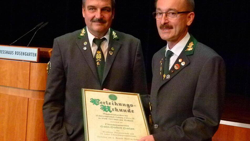 Hans-Herbert Hartan lebt für die Coburger Schützen. Nun bekam er bei der Schützentafel eine neue und hohe Auszeichnung dafür.