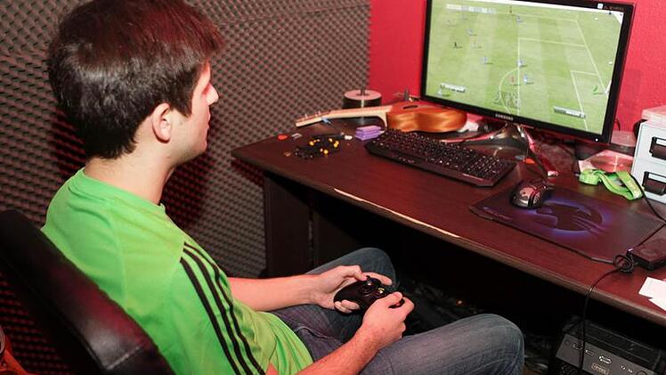 Durch Fifa zum TonstudioEr lehnt sich in seinen Stuhl zurück. Dahinter stehen Schlagzeug, Gitarren, Keyboard und Mischpult. Wenn er nicht gerade Fußball spielt, macht er in seinem kleinen Kellerstudio Pop-Punk. Er singt und spielt alle Instrumente selbst. "Die ganzen Musiksachen hab ich mir größtenteils durch das Computerspielen finanziert."