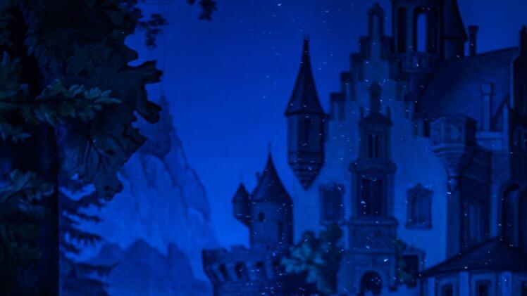 Schon die geschickt eingesetzte Filmmusik von Karel Svoboda entführt unwiderstehlich: Auf den von der Stiefmutter tyrannisierten Gutshof mit prächtiger Ansicht des Schlosses im Hinter- und mächtigen Bäumen im Vordergrund. Wir ziehen in die märchenhaft gemalte, groß und bezwingend wirkende Kulissenwelt, die Michael Heinrich aus der Theatergeschichte heraufbeschworen hat.