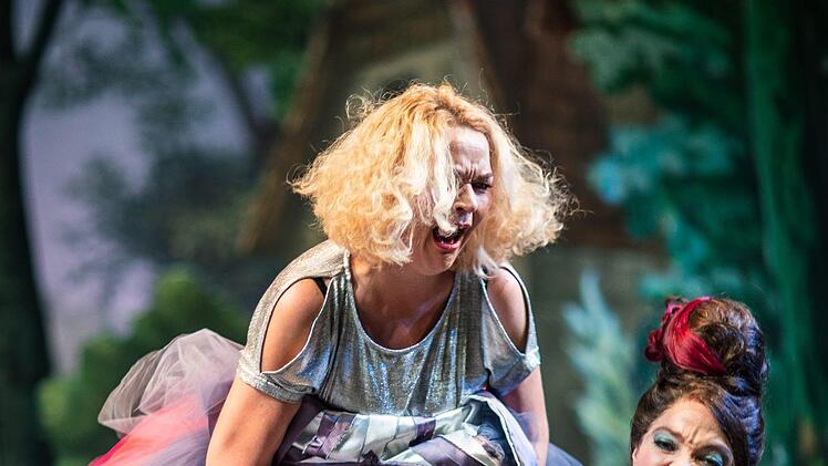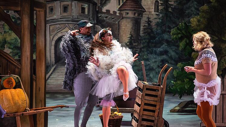 Dem allen kommt die gar nicht so unsympathische Stiefschwester Dorchen (Friederike Pasch), patschend im Tüll ihrer übermäßigen Verwöhnung, nicht hinterher, wie laut ihre rabiate Mama, Kerstin Hänel als böse Stiefmutter, auch rumkreischen mag.