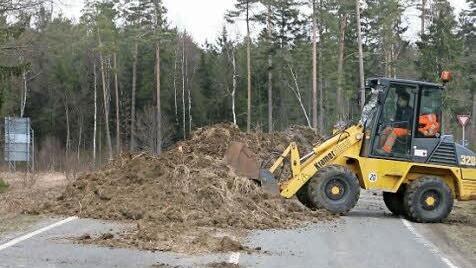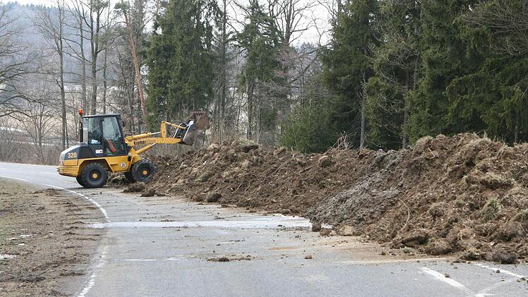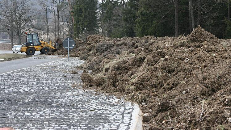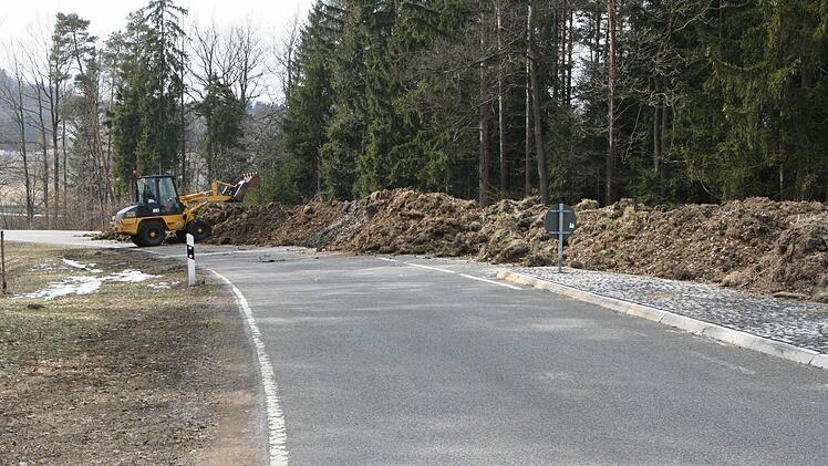 Die dabei anfallende Erde muss aus Sicherheitsgründen untersucht werden, weil sie belastet sein könnte. Also muss sie vorübergehend zwischengelagert werden, eben auf der gesperrten Kreisstraße selbst. Mit den Arbeite wurde gestern begonnen.