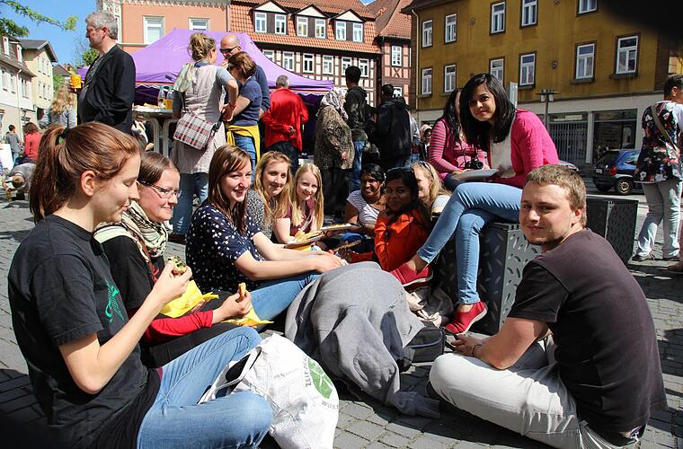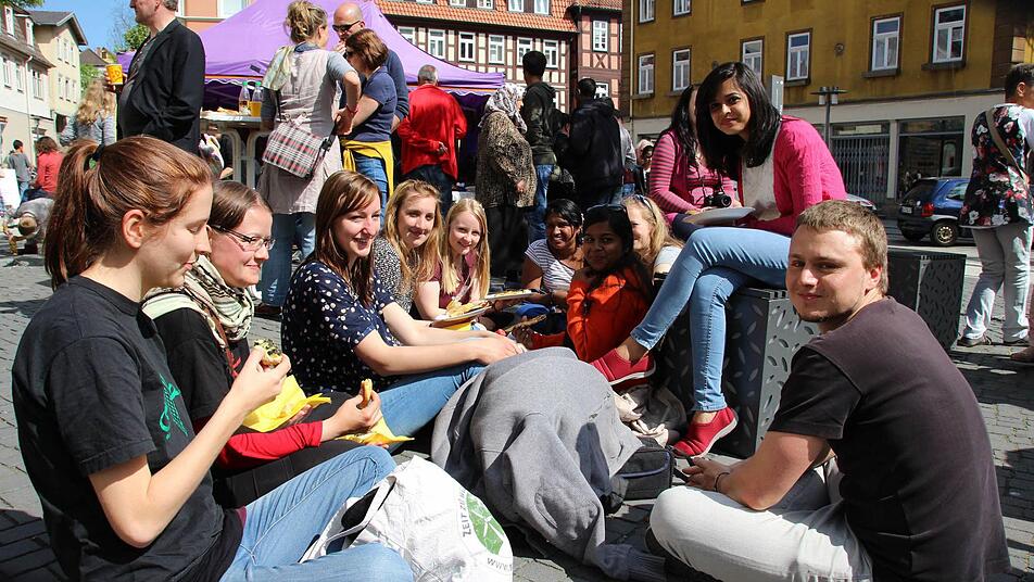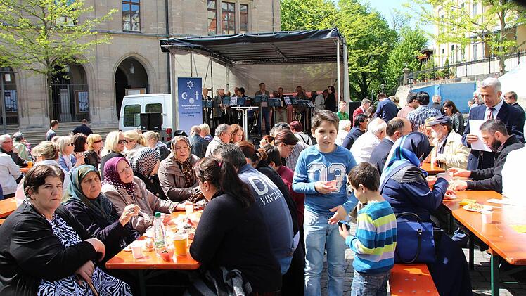 Bunt präsentiert sich Coburg. Das 1. Friedensfest auf dem Albertsplatz möchte ein Zeichen setzen gegen jede Form von Antisemitismus und Rassismus. Die Intension ist jedem der Besucher klar. Und während auf der Bühne die Organisatoren und Verantwortlichen von Toleranz und Respekt, von einem friedlichen Miteinander und interkulturellen Dialogen reden und reden und reden, lassen es sich die Menschen bereits richtig gut miteinander gehen.