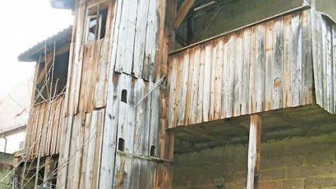 Viele gute Nägel, die er noch verwenden kann, sind es nicht, denn immerhin stecken sie in einem Haus aus dem Jahr 1688. Links daneben steht noch ein Zweites - auch schon über 200 Jahre alt. Dazwischen ist eine Einfahrt, die den Blick auf einen Hof mit Scheune preisgibt. "Die Scheune haben wir bereits zurück gebaut und erneuert. Für mich gehörten die beiden Häuser schon immer zusammen. Beim Arbeiten kam dann die Idee die beiden mit einem Übergang zu verbinden. Alles aus Altholz", sagt Hofmann.