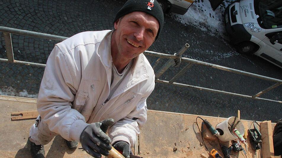 Hämmern und Sägen ist beim Betreten der Seßlacher Pfarrgasse, nahe der Kirche, zu hören. Auf einem Gerüst unter den Fenstern der ersten Etage eines Hauses steht Peter Hofmann. Er zieht gerade Nägel aus einem alten Fachwerk. "Die Guten ins Töpfchen, die Schlechten in den Keller", sagt Hofmann.