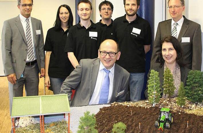 "Wir arbeiten komplementär", versichert Professor Gerhard Lindner, einer der beiden Leiter des Isat. "Wir entwickeln die Sensoren, und die Kollegen vom Fraunhofer-Institut vernetzen die Signale." Wie das aussieht, zeigte Professor Thomas Wieland bei der Besichtigung der Institutsräume. So können zum Beispiel Sensoren in einem Acker das Mikroklima, die Temperatur und Feuchtigkeit im Boden sowie die Nährstoffdichte messen. Diese Messungen geben dem Landwirt Hinweise, wie er säen oder düngen sollte - wenn nicht ohnehin die Düngemaschine fahrerlos übers Feld tuckert und direkt von den Sensoren gesteuert wird. Theoretisch wäre es möglich, solche batteriebetriebenen Sensoren mit der Saat auszubringen und bei der Ernte wieder einzusammeln, sagte Wieland.