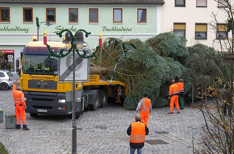 Den Bauhofleiter beschleicht dabei aber immer mehr ein ungutes Gefühl, denn große Bäume, die den Marktplatz zur Weihnachtszeit schmücken können, werden offensichtlich immer knapper. Wer deshalb so ein mächtiges Trumm - "so 12 bis 15 Meter sollte der Baum schon sein", erklärte Gerhard Reh - im Garten stehen hat und froh über ein bisschen mehr Platz wäre, kann sich gerne beim städtischen Bauhof melden. Der schaut sich dann den Baum an und würde ihn, wenn er passt, dann auch kostenlos fällen und abtransportieren. "Das ist vergleichsweise günstig", sagte der Bauhofleiter mit einem Schmunzeln.
