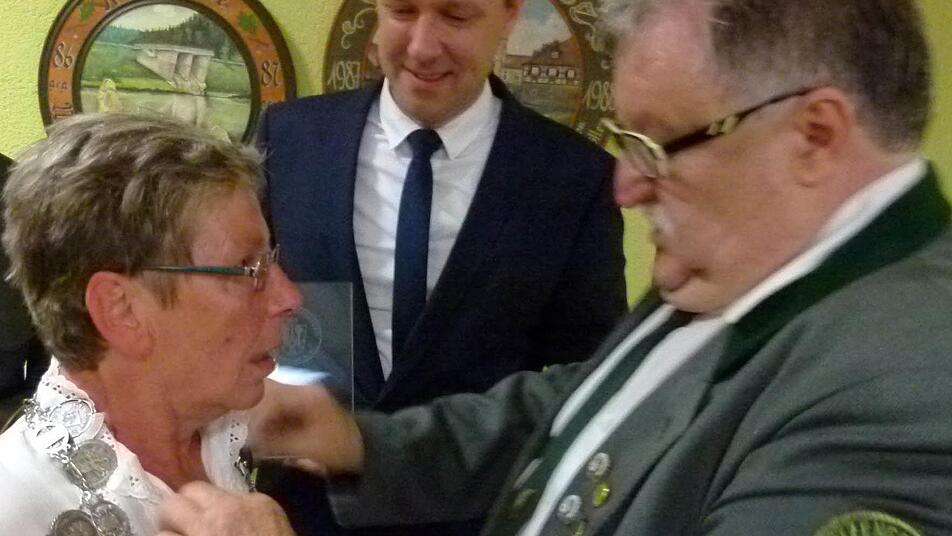 Gespannt saßen die Schützen der Schützengesellschaft mit Mitgliedern befreundeter Vereine in ihrem Vereinsheim zusammen und warteten auf die Königsproklamation. Beifall brandete auf, als Werner Krug das wohl gehütete Geheimnis preisgab. Es ist diesmal eine Dame, Christina Schäftlein. Sie errang mit einem 105-Teiler die Würde und darf für ein Jahr die Schützenkette tragen und den Verein nach außen hin vertreten. Als 1. Ritter fungiert der Vorjahreskönig Rainer Reißenweber (38-Teiler), gefolgt von Wolfgang Krug als 2. Ritter (253 Teiler).