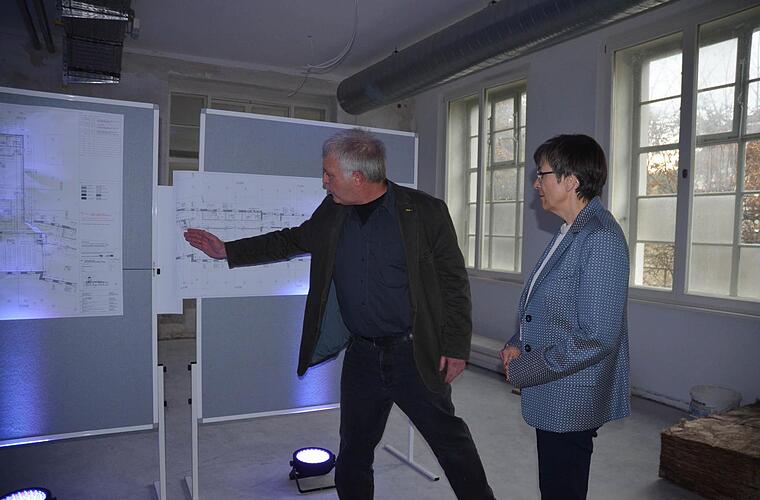 "Ohne Förderung hätte eine Stadt unserer Größenordnung so ein Projekt nie umsetzen können", weiß Frank Rebhan. Rund 1,3 Millionen Euro an öffentlichen Mitteln werden in dem Bau stecken, wenn er im kommenden Sommer fertig sein wird. Inzwischen sind zumindest alle Gewerke des Bauhauptgewerbes fertig, wie Richard Peschel vom Bauamt der Stadt erklärte.