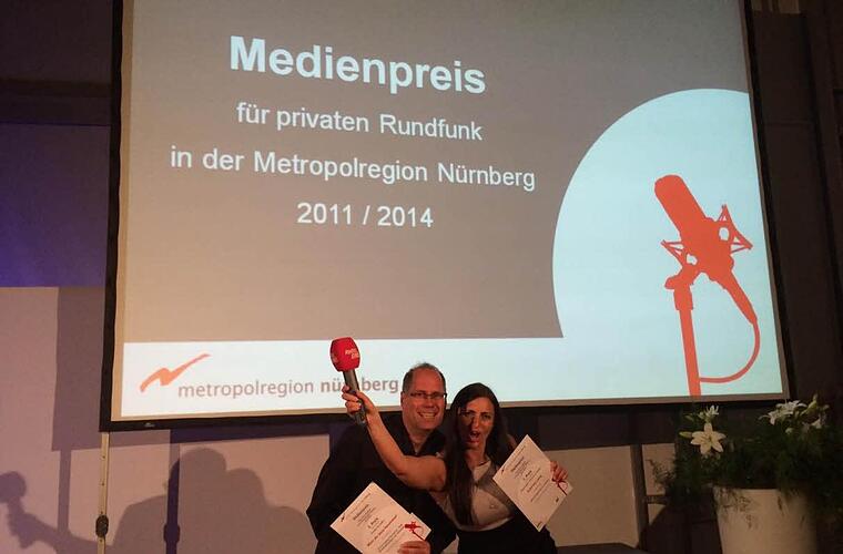 Sabrina Lang hat in der Kategorie "Reportage/Feature" den Medienpreise für den privaten Rundfunk in der Metropolregion Nürnberg gewonnen. Auch ihr Kollege Marc de Vere Peratoner stand bei der Siegerehrung auf dem Treppchen.