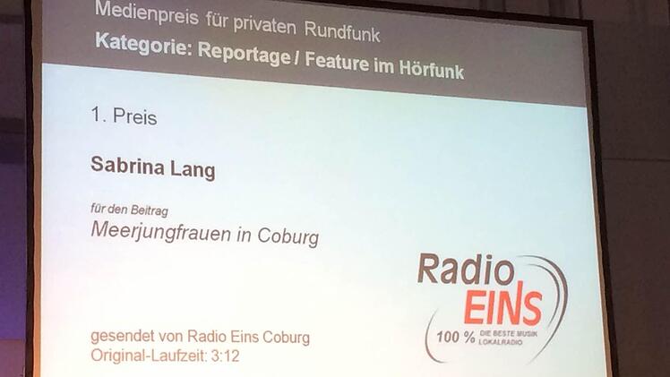 Sabrina Lang freute sich über den ersten Preis in der Kategorie "Reportage/Feature". Die Reportage sei ein Radiobeitrag, der nur noch selten in Programmen zu hören sei, so die Jury. Mit ihrer "echten Reportage" über drei Kinder, die als Meerjungfrauen durch das Coburger Freibad schwimmen, konnte Sabrina Lang überzeugen. Der Hörer werde eingeladen, mit einzutauchen in die Welt der Meerjungfrauen und erlebe die Geschichte der Kinder hautnah. Das gelinge durch die emotionale und lebendige Erzählweise der Autorin, der man anmerke, dass sie Spaß bei der Arbeit habe, so Heike Wolf, Jurymitglied und Laudatorin für den Medienpreis in der Kategorie "Reportage/Feature".