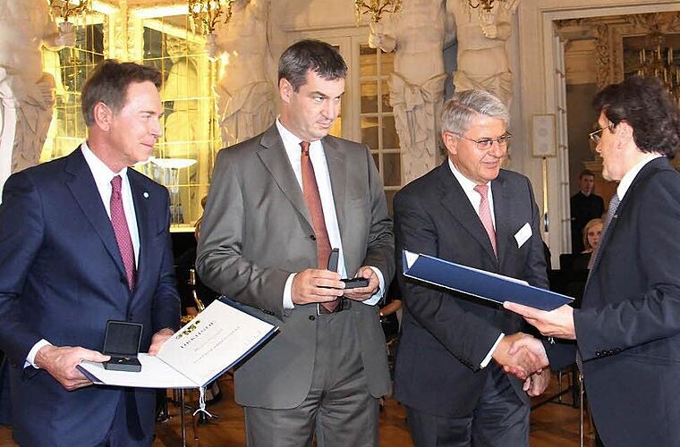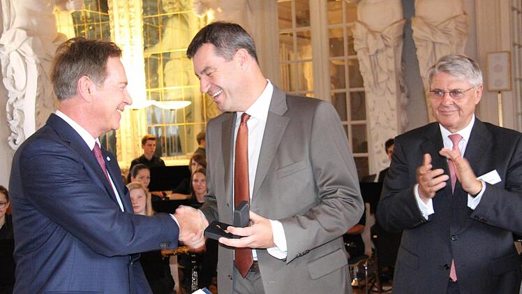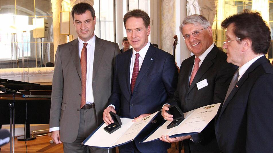 Beide hätten sich als Unternehmer und fürs Gemeinwohl verdient gemacht, würdigten sowohl IHK-Präsident Friedrich Herdan als auch Finanzminister Söder die Geehrten. Die HUK Coburg und Brose seien dank der beiden Unternehmer "Schwergewichte unseres Wirtschaftsraums", sagte Herdan. Sie hätten den Kammerbezirk wesentlich geprägt und über nationale Grenzen hinweg Weltruf erlangt. "Das ist herausragende unternehmerische Leistung, die höchste Würdigung verdient."
