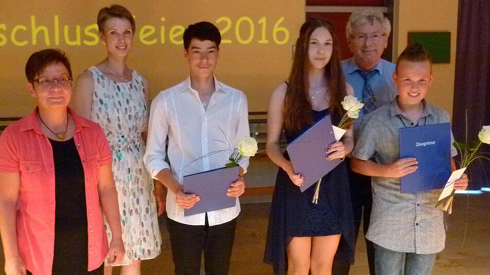 22 Schüler haben in Bad Rodach den Mittelschulabschluss erreicht und wurden im Rahmen einer Feier aus der Schule entlassen. Hinzu kommt, dass 17 Schüler die besondere Leistungsfeststellung zum Erwerb des qualifizierten Abschlusses bestanden haben, was einer Quote von 77 Prozent entspricht. Ein Schüler bestand mit "sehr gut", das war Luis Grambole, der als Bester aller Landkreismittelschulen abschnitt und im Landratsamt gesondert geehrt wurde. Sieben Schüler erreichten die Note "gut" und neun die Note "befriedigend". Erfreulich ist auch, dass 14 Schüler der 9. Klasse einen Ausbildungsplatz ergattern konnten. Acht besuchen weiterhin eine Schule. Klassenlehrerin Simone Gutwein erinnerte in Gedichtform an die Schulzeit unter dem Titel "Abschluss Halligalli, Schluss mit dem Gerangel", äußerte die Wünsche, immer miteinander zu reden, das Leben zu genießen und Streit zu vermeiden. "Versucht euer Leben ehrlich zu meistern", meinte Gutwein.