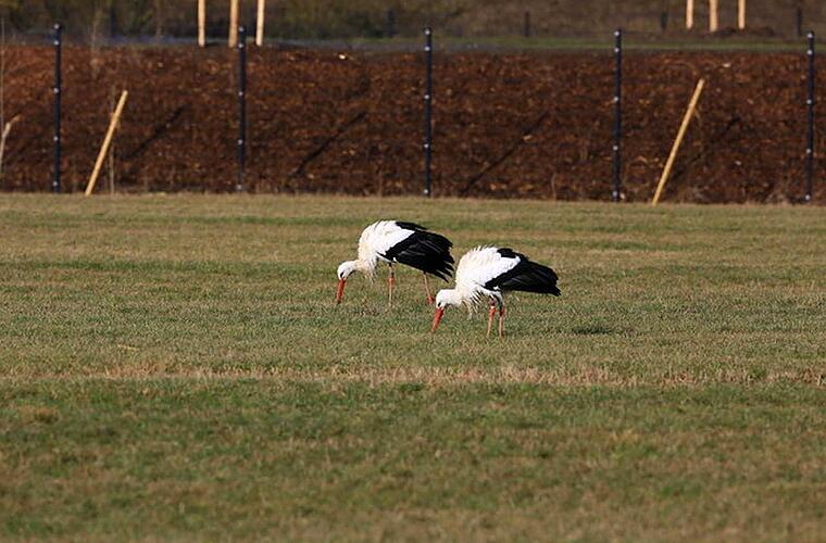 Wer während der Winterwochen aufmerksam durch den Itzgrund gefahren ist, wird immer wieder zwei Störche auf den Wiesen neben der Bundesstraße 4 gesehen haben. Das waren die beiden Vögel, die beim Schernecker Tierarzt Hans-Joachim Lessing den Winter verbracht haben. Ganz unüblich ist diese Standorttreue während der kalten Jahreszeit nicht mehr, wissen die Vogelspezialisten beim LBV. Immer mehr Tiere - erst Recht, wenn sie sich bei extremer Witterung auf Zufütterung durch Menschen verlassen können - ziehen gar nicht mehr in Süden und versuchen stattdessen, den Winter vor Ort zu überstehen. Minusgrade, erklärt Schönecker, sind da nicht das Problem: "Die Vögel plustern sich auf und das Federkleid schützt sie vor tiefen Temperaturen."