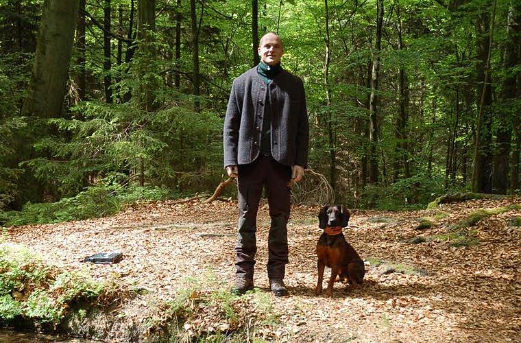 "Er ist der Jüngste im Revierleiter-Team", stellt Betriebsleiter Albert Schrenker seinen Mitarbeiter vor, und ergänzt: "Er hat sicher kein leichtes Revier, aber eines der schönsten in der Region." Tatsächlich führt Fabian Hecker zu versteckten Teichen, geheimnisvollen Hütten und malerischen Felsen. Er findet immer neue Ecken, die er gern zeigt.