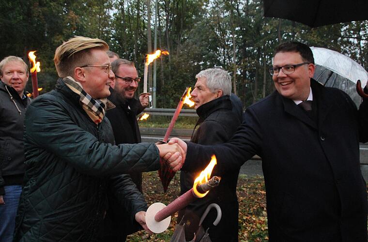 Maximilian Forkel, Vorsitzender der Jungen Union Coburg-Stadt ist 1994 geboren und hat den Mauerfall und die Wiedervereinigung nicht miterlebt. Dennoch nimmt Forkel am Fackelzug teil, um daran zu erinnern, dass Deutschland einmal ein geteiltes Land war. "Meine Generation kann sich das kaum noch vorstellen", sagt Forkel. Gerade deshalb will die Junge Union mit dem Umzug zeigen, dass solch ein historisches Ereignis nicht in Vergessenheit gerät.