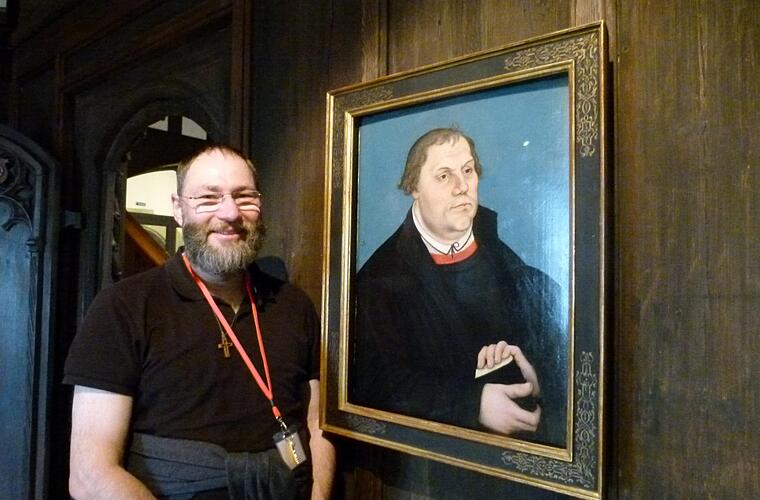 Nachdenklich steht Christian Priesmeier in der Veste Coburg vor dem berühmten Porträt von Martin Luther. Lucas Cranach der Ältere hat es 1528 gemalt. Es sieht so aus, als ob Christian Priesmeier stumme Zwiesprache mit dem Reformator halten würde. Ein Lächeln huscht über das Gesicht des vollbärtigen 53-Jährigen. Hat er etwa nur in einen Spiegel geschaut beim Betrachten des Bildes und sich darauf wiedererkannt?