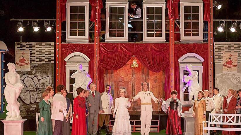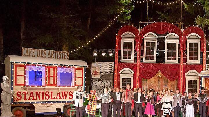Mit Emmerich Kálmáns "Zirkusprinzessin" gelingt eine bemerkenswert wetterfeste Inszenierung auf der Waldbühne Heldritt. Bei der ausdauernd bejubelten Premiere lassen sich Künstler und Publikum auf von den widrigen Witterungsbedingungen nicht irritieren.