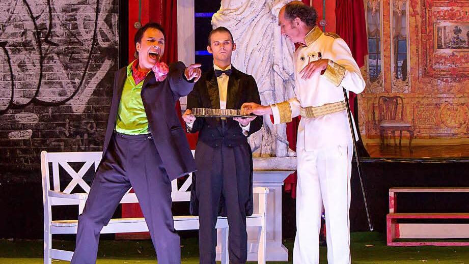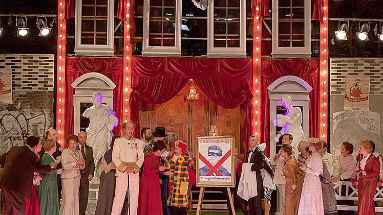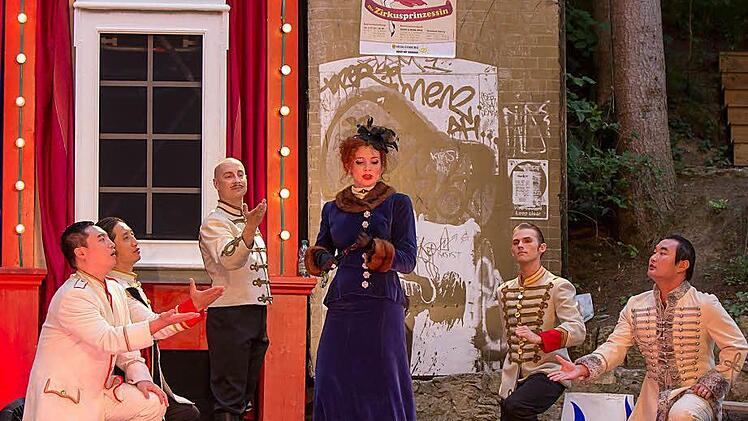 Stimmungsvolles Bühnenbild Der Himmel über Heldritt aber bleibt an diesem Abend unerbittlich grau. Immerhin lässt der Regen dann doch etwas nach, als die Ouvertüre zu Kálmáns "Zirkusprinzessin" ertönt. Das Spiel an diesem reichlich feuchten und schon herbstlich kühlen Abend kann beginnen. Und dieses Spiel heißt: Reiche Witwe liebt einen scheinbar mittellosen Außenseiter.