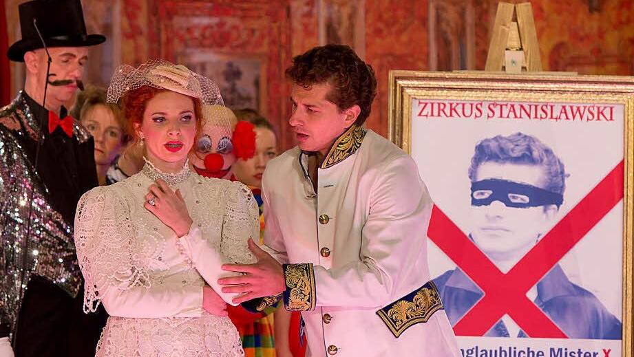 Adam Sanchez als Mister X Hinter der Maske des geheimnisvollen Mister X verbirgt sich der enterbte Neffe eines Fürsten, der seinen Lebensunterhalt mit abenteuerlichen Darbietungen im Zirkus verdient. Stimmlich ist diese Partie eine echte Herausforderung für einen Tenor mit dramatischen Anlagen. Adam Sanchez bewältigt sie mit Elan und vokalem Durchsetzungsvermögen.