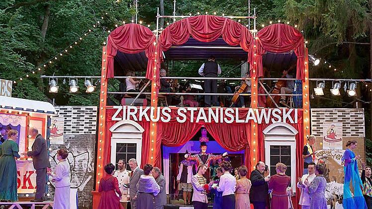 Den passenden Rahmen liefert Frieder Klein mit seinem stimmigen, geschmackvoll arrangierten Bühnenbild, das im ersten Akt glitzernde Zirkusatmosphäre mit Lichterketten und gerafften Vorhängen auf die Waldbühne zaubert und den folgenden beiden Akten mit wenigen Versatzstücken und geschickter Lichtregie (Ralf Beyer) wirkungsvolle Verwandlungen ermöglicht. Prachtvolle, üppige Kostüme sind die perfekte Ergänzung dazu.