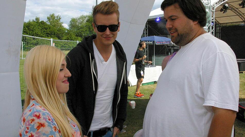 Die Jüngeren Besucherinnen freuten sich am Nachmittag über "ihren" Stargast Bibi. Die Kölnerin Bianca, die auf Youtube und Facebook mit ihren Beauty- und Lifestyle-Tipps sowie Comedy-Videos ("Bibis Beauty Palace") zahlreiche Teenie-Fans begeistert, war extra mit ihrem Freund Julian vom Rhein angereist. "Das sieht schon megageil aus, wenn die Farben so hoch geworfen werden", kommentierte die 21-Jährige ihr erstes Holi-Erlebnis. Ina Treuger aus Bad Rodach (14) und Lena Holland aus Neustadt (11) warteten schon ungeduldig auf die angekündigte Autogramm-Stunde.