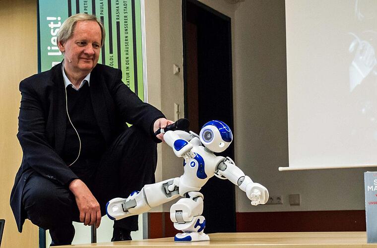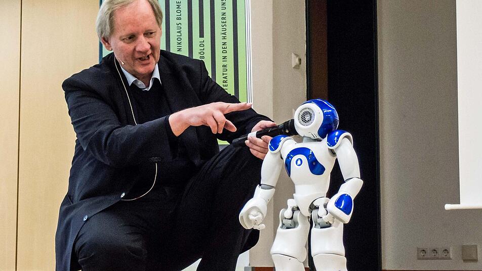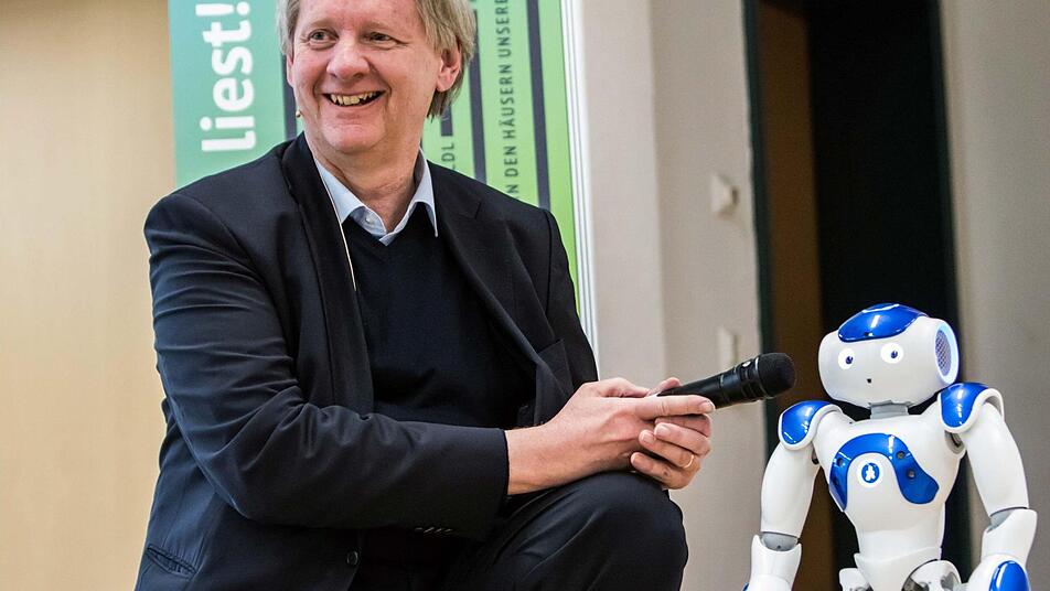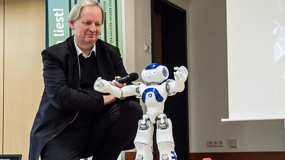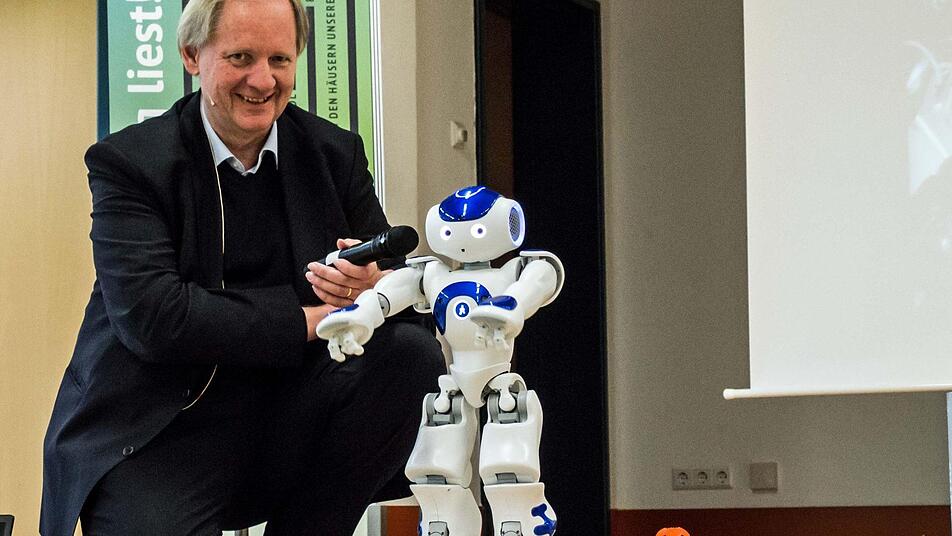 Nao erobert die Herzen seiner Zuhörer im Nu. Artig begrüßt er die "Coburg liest"-Gäste, die den Weg gefunden haben in die Aula des Coburger Gymnasiums Ernestinum zum Vortragsabend mit Ulrich Eberl. Nao ist noch recht klein und seine Bewegungen wirken noch ein wenig ungelenk. Aber er kann sogar schon ein bisschen Fußball spielen, wie er oben auf dem Podium vorführt.