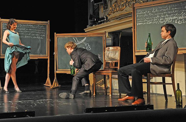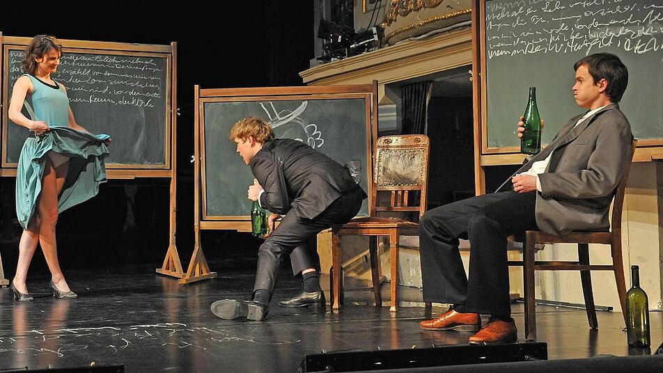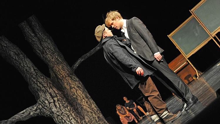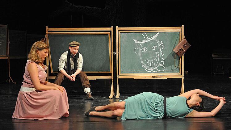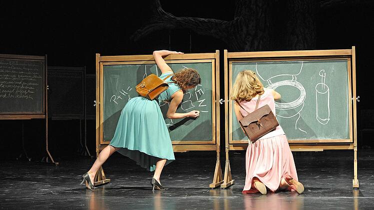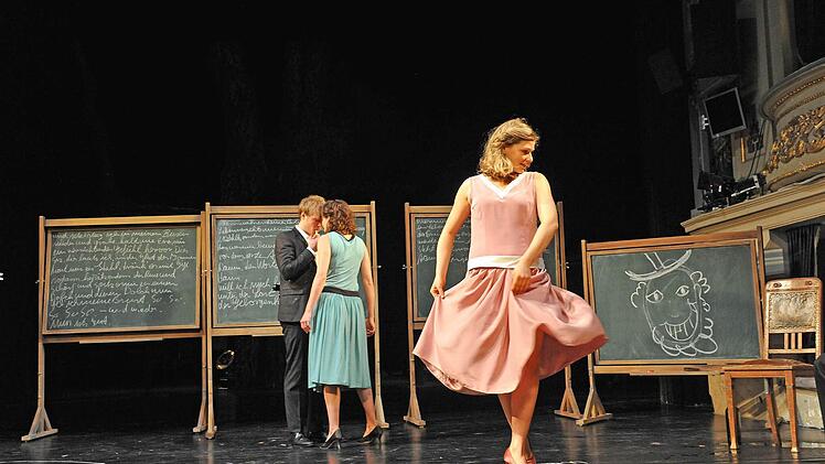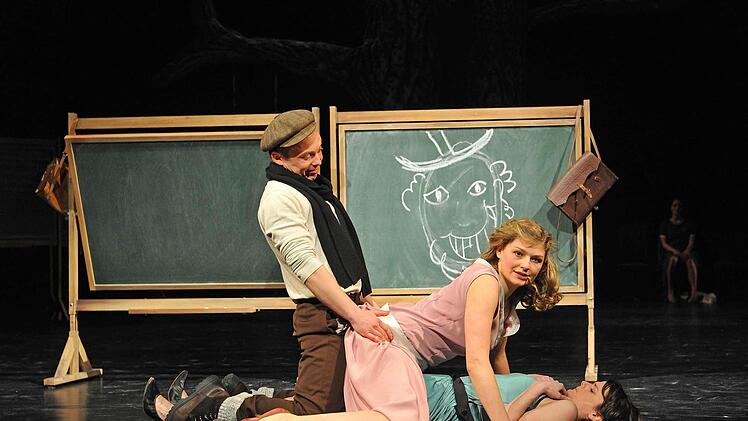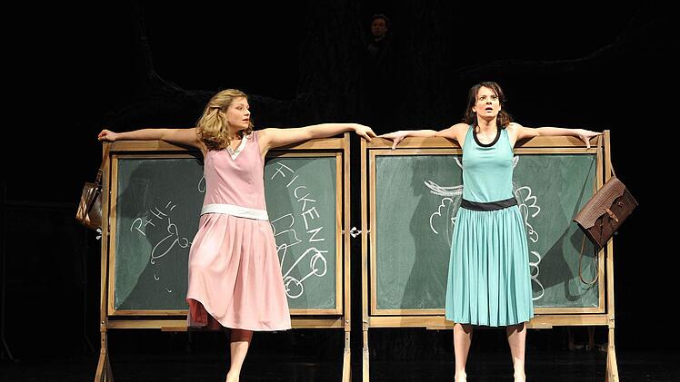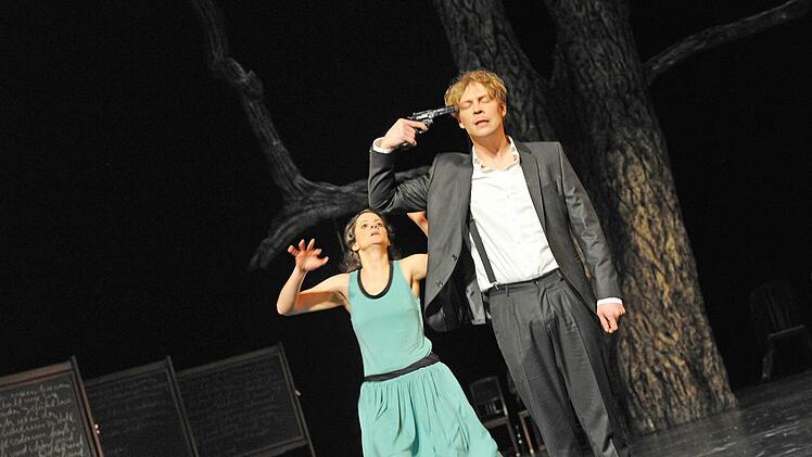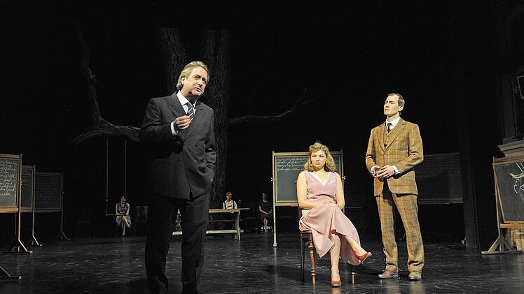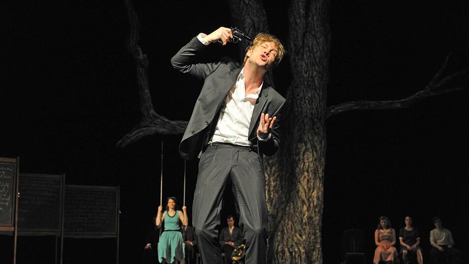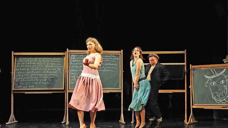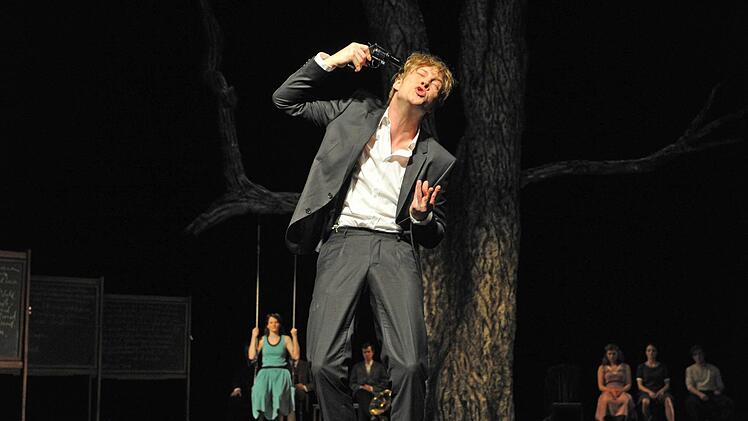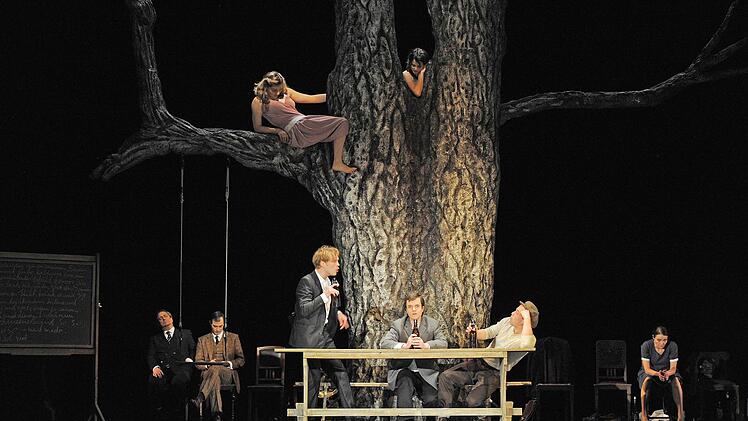 Regisseur Johannes Zametzer versuchte der papierenen Vorlage Bühnenleben einzuhauchen: Mit Spieltempo. Mit musikalischer Unterfütterung zwischen Zwanziger Jahre-Schlager und hartem heutigen Party-Sound. Mit zupackender Gestik. Die 18 Szenen lässt Zametzer an die Rampe rempeln, unter die Äste des großen, knorrigen, aber abgestorbenen Baumes kriechen, den Ausstatter Udo Herbster in die hintere Mitte der Bühne gesetzt hat, oder von den vielen variablen Schultafeln symbolhaft eingrenzen. Alles ist spaßig und dabei furchtbar ernst.