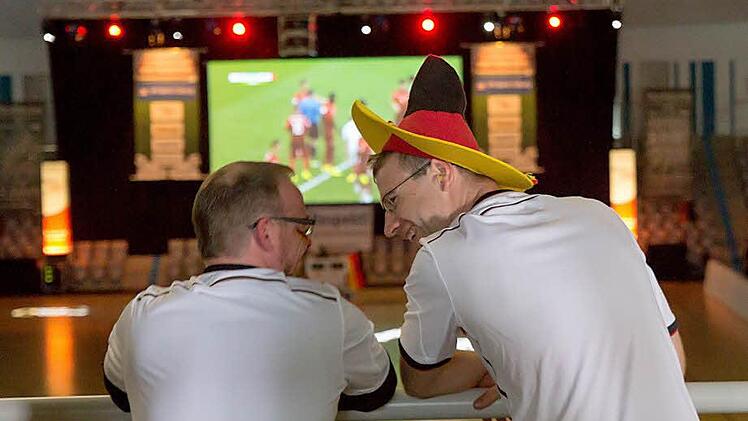 An der Stimmung freilich fehlt's nicht. Wie bei den HSC-Spielen hat Claus Glade seine Trommel geholt und den Takt vorgeben für die "Deutschland, Deutschland"-Rufe. Die knapp 1000 Besucher machen zwar Krach wie 3000, füllen aber bei weitem nicht alle Plätze in der Arena."Das wird besser", verspricht Thomas Apfel, Redaktionsleiter von Radio Eins und sozusagen WM-Fanarena-Chef. Die Leinwand habe man nicht weiter nach vorne hängen können. Schließlich erwarten die Veranstalter der Fanarena, darunter das Coburger Tageblatt, dass spätestens nach der Vorrunde mehr Fußballbegeisterte in die Halle strömen. Denn eigentlich sind hier die Voraussetzungen ideal, findet auch Christian Ringelmann: unabhängig vom Wetter, gute Licht- und Sichtverhältnisse, genug Parkplätze.