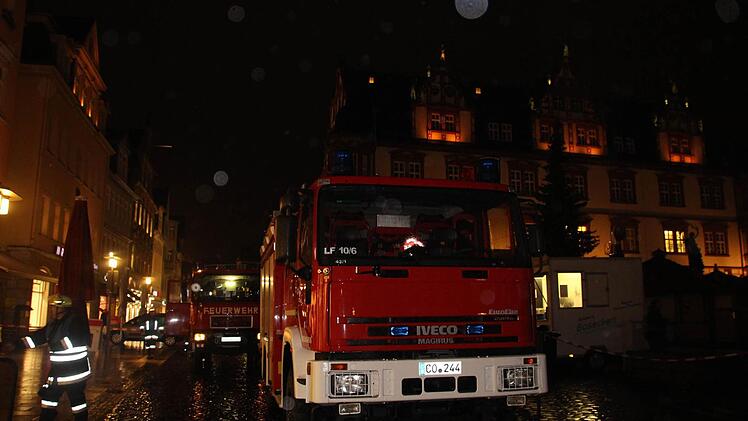 Große Aufregung am frühen Mittwochabend in der Coburger Innenstadt: Am Marktplatz qualmt es aus dem Dachgeschoss . Die Szenerie wenige Minuten später erinnert an den Brand in der Herrngasse Pfingsten 2012. Das Aufgebot an Feuerwehr, Polizei und Rettungskräften ist groß. Teile des Marktplatzes und die Judengasse sind mit Bändern abgesperrt.