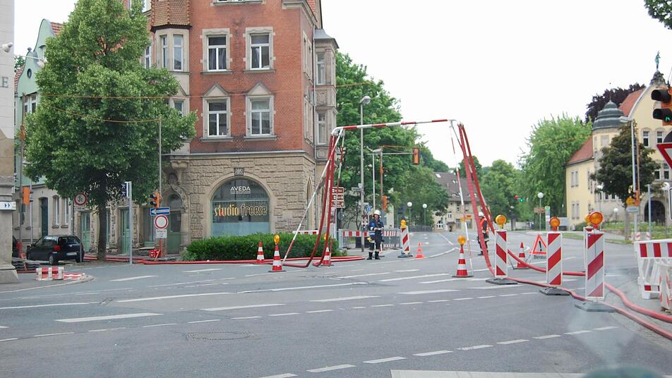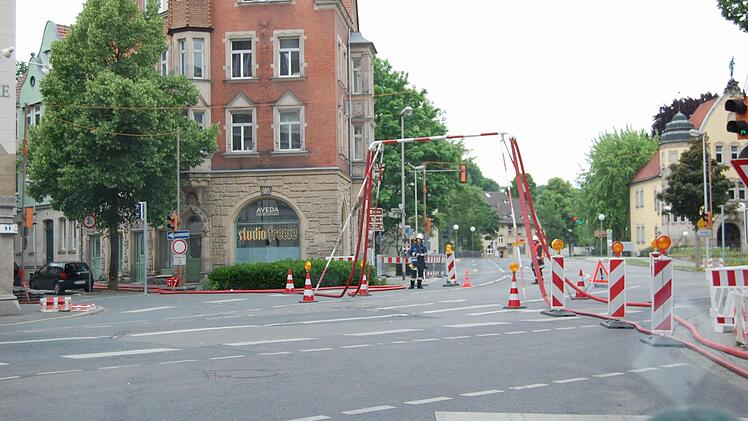 Weil immer wieder neues Löschwasser benötigt wurde, legten die Feuerwehrleute mehrere Schlauchleitungen zur Itz - von der Herrngasse über den Marktplatz und weiter durch die gesamte Judengasse.