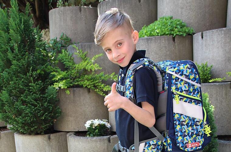 Zunächst einmal hat er im Internet recherchiert, welcher Ranzen wohl am besten geeignet ist. Einen Brust- und Hüftgurt sollte die Schultasche haben und möglichst leicht und stabil sein.