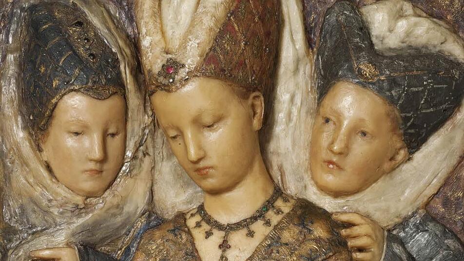 Entzückend sind die drei jedenfalls, gefunden hat sie der Direktor der Kunstsammlungen, Klaus Weschenfelder, auf der Kunstmesse in Maastrich, und das Kunstwerk ist das einzige dieser Art, das in Deutschland ausgestellt werden kann. Die drei Frauen sind in der burgundischen Mode des Spätmittelalters gekleidet und befinden sich in einer intimen höfischen Szene von rätselhafter Bedeutung.