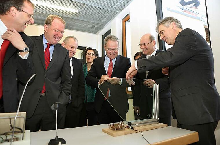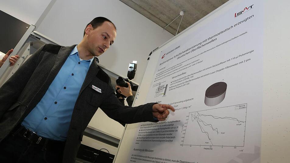 Was das Isat tut, zeigten Lindner und seine Mitarbeiter beim anschließenden Rundgang im neuen Gebäude, das allerdings noch nicht ganz bezugsfertig ist. So entwickelte das Isat für Brose eine berührungsempfindliche Fensterscheibe. Zu sehen war auch der Prototyp einer Dunstabzugshaube, die keine Schalter mehr braucht, sondern die über Berührungen an bestimmten Stellen ein- und ausgeschaltet werden kann. Mit Hilfe von Ultraschall lassen sich selbstreinigende Oberflächen schaffen, Stickstofflaser messen berührungslos die Beschaffenheit von Oberflächen. Freilich durften die Vorführungen nicht allzu sehr in die Tiefe gehen: Mit den Kunden sei Vertraulichkeit vereinbart, sagte Lindner.