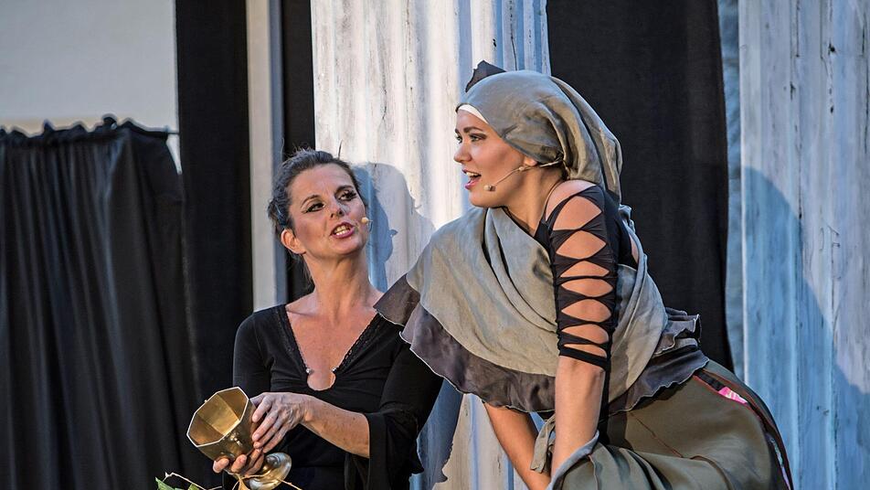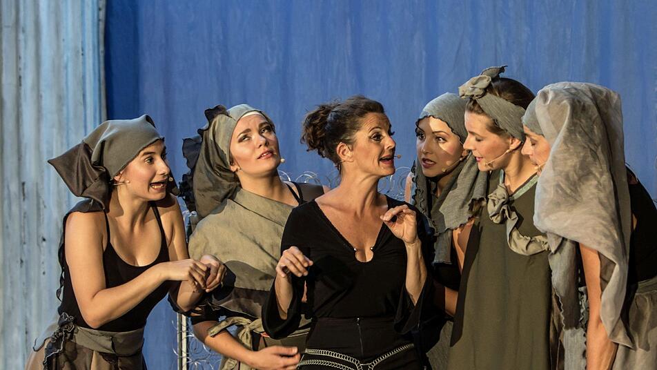 Das weckt natürlich den Widerstand der Männer und führt zu mancherlei Verwicklungen - reichlich Stoff für einen turbulenten Theaterabend unter freiem Himmel, der effektvoll auch ein wenig fränkisches Lokalkolorit in Dialektform bereithält.
