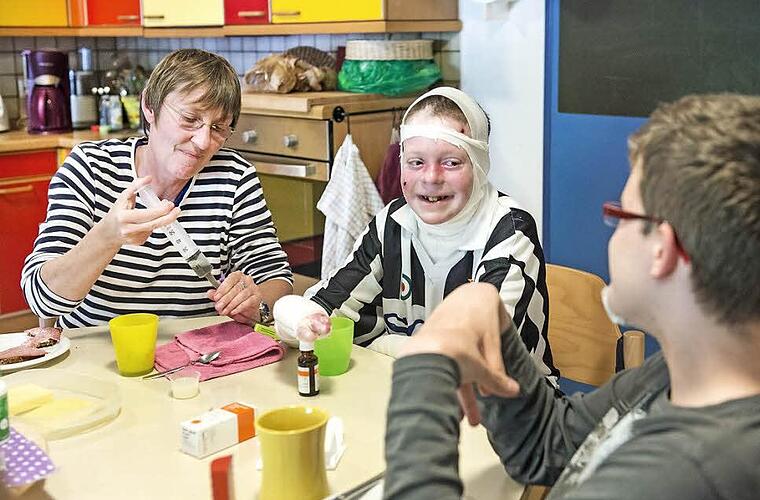 "Wir waren uns auf Anhieb sympathisch." Und als Patrick dann am Abendbrottisch meinte, er wolle es mit dem Internat probieren, und wenn es ihm nicht gefällt, kommt er eben wieder heim, war die Entscheidung gefallen. In einem offenen Gespräch über die besonderen Pflegemaßnahmen und die medizinische Versorgung wurde abgeklärt, ob das Haus das leisten kann. "Aber die Leitung und die Betreuerinnen meinten, das kriegen wir schon hin." Und so ist es auch.