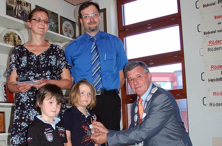 Während die Hilfe für seine Mama anlief, kümmerte sich Georg, so Preß, auch noch vorbildlich um seinen jüngeren Bruder Anton. Der war mit dem großen Bruder gestern in den Sitzungssaal des Rathauses gekommen und natürlich waren Mama und Papa Sven auch mit dabei, als der Bürgermeister Georg den Orden an die Brust heftete. Dazu gab es noch die etwas dezentere Anstecknadel, die Georg, der übrigens der jüngste Lebensretter war, der bei dieser Ordensverleihung ausgezeichnet werden sollte, später am Revers eines Anzugs tragen kann. Und eine schicke Uhr und Freikarten für das Schwimmbad in Rödental gab es noch dazu.