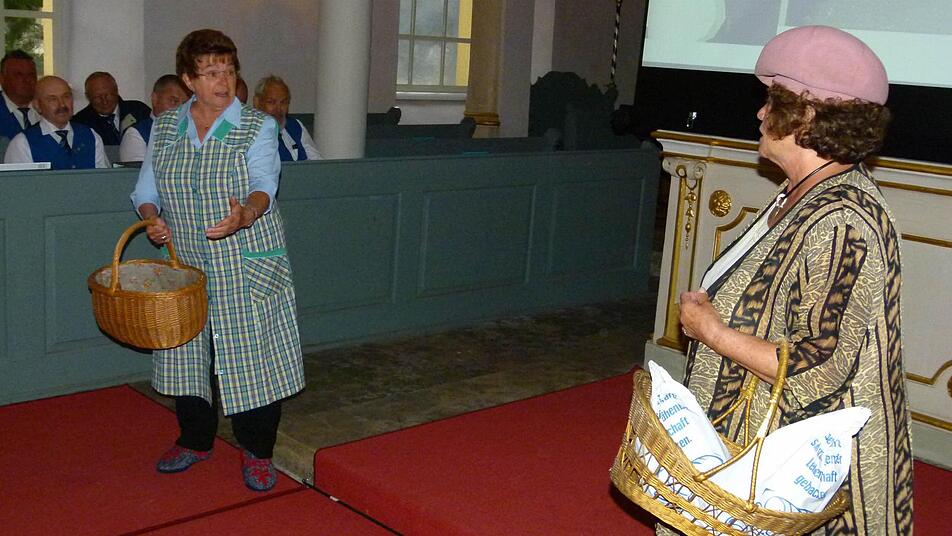 Horst Büchner erinnerte an die 70er und 80er Jahre, in denen eine Brandkatastrophe das Dorf aufschreckte. Sebastian Hütter ließ es sich nicht nehmen, die Wiedervereinigung und die Dorferneuerung ins Gedächtnis zu rufen. Der Männerchor des LTV umrahmte mit wohlklingenden Weisen und deren Leiter Alfred Hahn trat am Altar als Nachtwächter auf: "Das Dörfchen wuchs mit den Jahren und trotzte vieler Gefahren." Mit der Bitte "Herr in deiner Güt und Macht, gib auf das Dorf hier acht" schloss dieser Programmteil. Harald Heusinger war es vorbehalten, die Vorträge mit Lichtbildern zu untermalen.