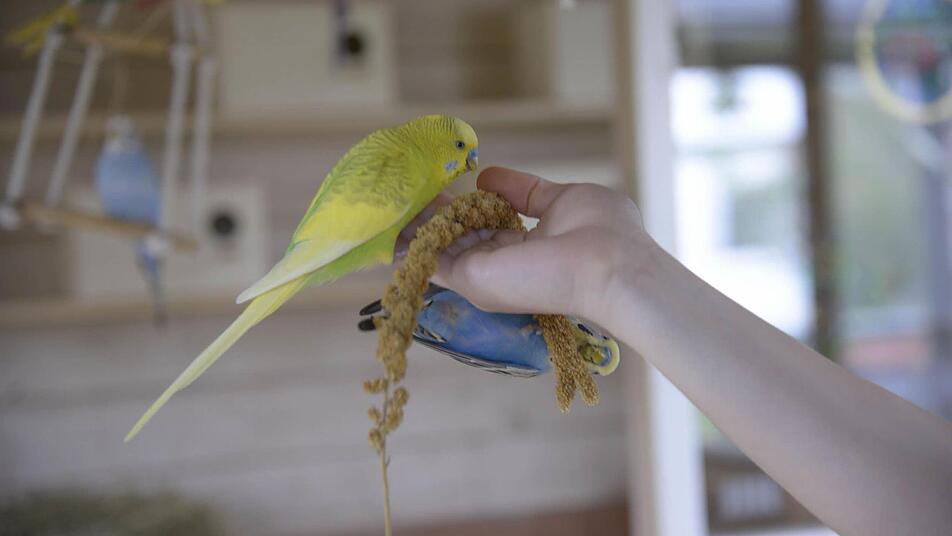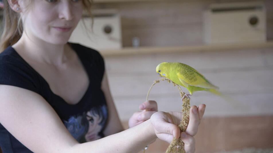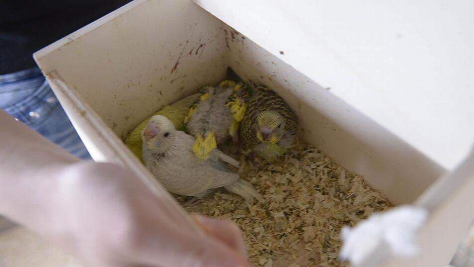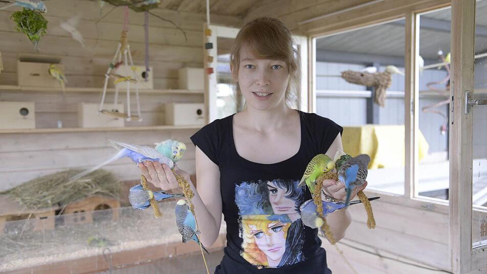 Die Vögel bewohnen ein kleines Traumhaus mit Voliere. Darin können sie frei fliegen und haben jede Menge Spielmöglichkeiten. "Um die Sittiche handzahm zu machen, muss ich aber schon jeden Tag viel Zeit mit ihnen verbringen." Mit Erfolg, wie man sieht, wenn Jessica die Tür aufmacht: Sofort fliegen die Wellensittiche auf ihre Hand oder ihre Schulter, picken und knabbern an ihr. Die Jungtiere werden gehegt und gepflegt - und wenn der passende Käufer kommt, bei dem Jessicas Herz Ja sagt, wird auch ein Wellensittich verkauft.