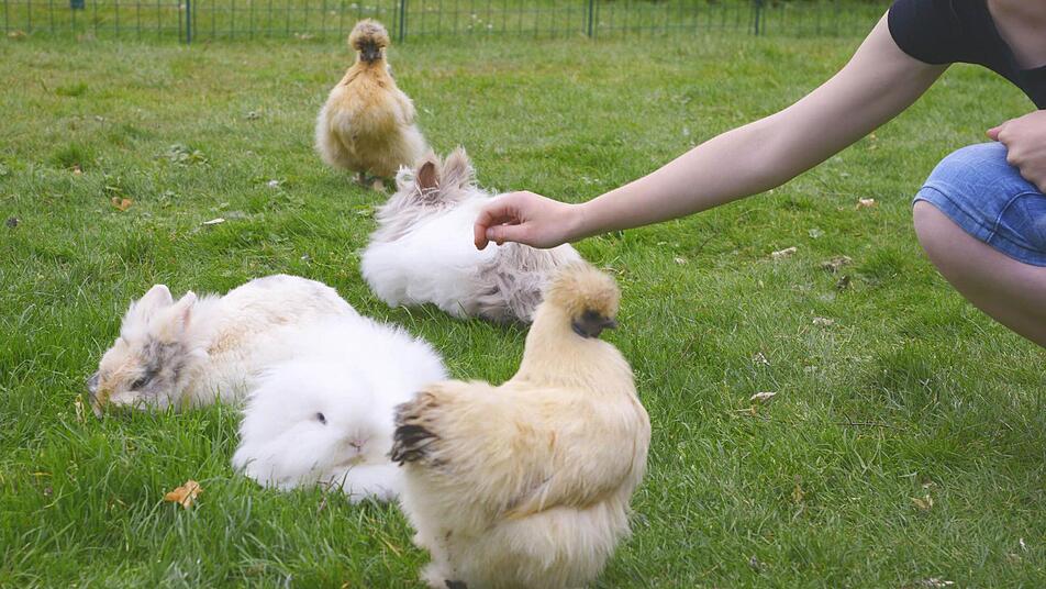 Jessica liegt das Wohlbefinden ihrer Tiere besonders am Herzen. So springen Hasen, Hühner und Meerschweinchen im Freigehege durch den Garten. "Manchmal helfen sie uns sogar bei der Gartenarbeit", erzählt sie ganz stolz. Wenn zum Beispiel ein neues Beet angelegt oder umgegraben wird, kommen die Hühner herbeigeeilt und picken die Würmer, Maden und Schädlinge ruckzuck weg.