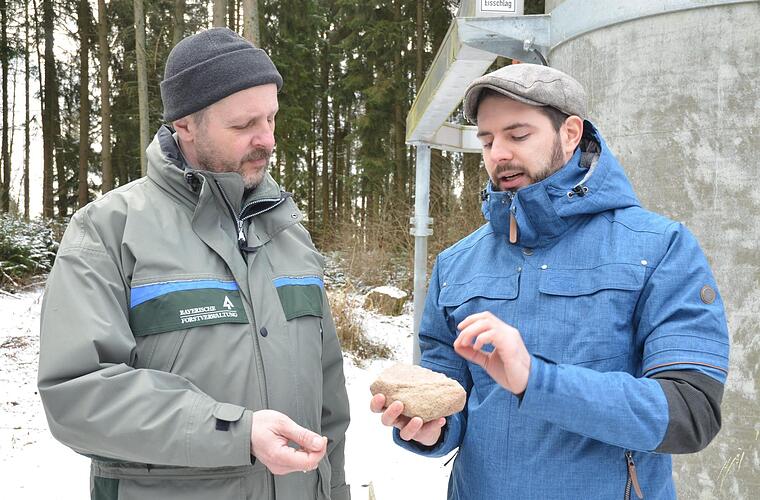 Förster Fabian Hecker, der den Wald auf dem Muppberg für den Forstbetrieb Coburg der Bayerischen Staatsforsten bewirtschaftet, interessierte vor allem, welche Bedeutung die Entdeckung eines großflächigen Bodendenkmals für die Waldarbeit hat. Denn Bodendenkmäler sind geschützt und dürfen auch im Zuge der Bewirtschaftung nicht beschädigt werden. Dies spiele aber erst dann eine Rolle, wenn etwa beim Wegebau Erde bewegt wird, erklärte Markus Ullrich vom Landesamt für Denkmalpflege. Das sollte vorher mit der Denkmalschutzbehörde am Landratsamt abgestimmt werden. Bei Grabungen könnten dann Fachleute wie Philipp Schinkel eingebunden und möglicherweise Funde gesichert werden. Solche Funde machte Schinkel auch an Stellen, wo der Wurzelteller umgestürzter Bäume den Boden öffnete. Solchen "Fenstern in den Untergrund" verdanken wir auch Funde, die schon vor Jahrzehnten am Berg gemacht wurden. Unter anderem fanden sich auf dem Muppberg eine Bronzenadel, Keramikscherben und Steine, bei denen unter dem Mikroskop nachgewiesen werden konnte, dass sie zum Schärfen von Bronzewerkzeugen genutzt wurden.