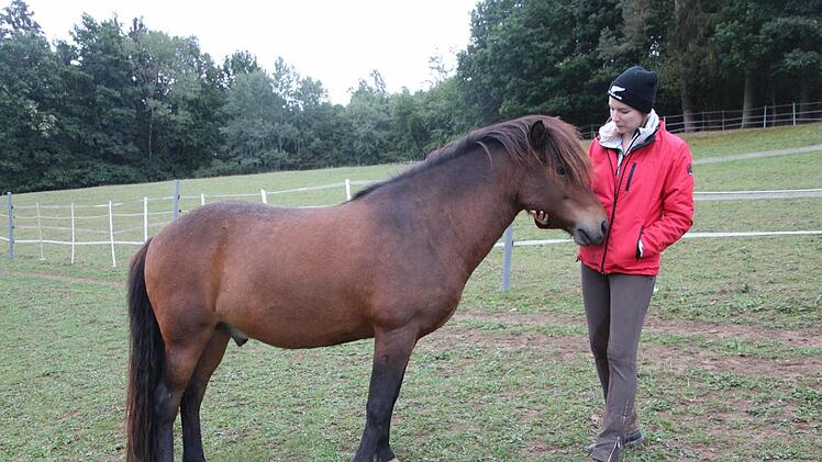 Abgesehen vom Tölt liebt Annina Dressel auch das Wesen ihrer Pferde: "Sie sind sehr sensibel und trotzdem sehr treu." Weil die Islandpferde ein sehr ausgeglichenes Wesen hätten, nicht allzu groß seien aber trotzdem sehr kräftig, seien sie auch beim therapeutischen Reiten sehr beliebt. Robust, wie sie sind, haben sie wenig gesundheitliche Probleme. Allerdings reagieren sie auf den Speichel der Griebelmücke, die es in Island nicht gibt, in unseren Breiten aber schon. Dann bilden sich Ekzeme, weshalb eins der Tiere auch einen Rundumschutz trägt.