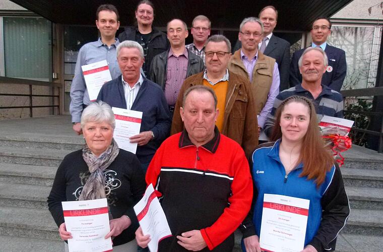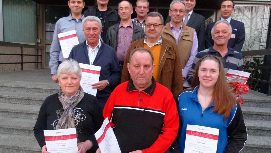Sie denken obendrein solidarisch und beweisen Gemeinsinn." Mit der BRK-Ehrenurkunde und Ehrennadel wurden Florian Gräbner, Steffen Lindner und Monika Schmiegel für 25-maliges Spenden, Hilmar Friedrich und Rainer Friedrich (50 Mal), Frank Kaiser, Rudi Reißenweber, Frank Schillig und Veronika Söldner (75 Mal), Reiner Höhn (100 Mal) und Manfred Tegge (175 Mal gespendet) geehrt.