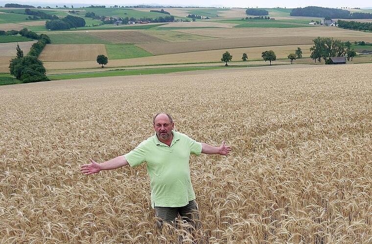 Nasser Acker wäre ideal als künftige Feuchtwiese Während der Acker unterhalb des Berg-Gipfels sonnenbeschienen und trocken ist, liegt nur ein paar Steinwürfe hangabwärts ein nasser Acker. Der Raps, der derzeit darauf wächst, tut sich sichtlich schwer. Wohl auch deshalb tat sich der Eigentümer der Fläche eher leicht, sich vom Acker zu trennen. "Für die Landwirtschaft ist er wirklich zu feucht", weiß Puff und stellt seine Pläne für die künftige Nutzung des flachen Talgrundes vor: Feuchtwiese, nasse Mulden, Grabenaufweitung, maximal ein/zwei Mal im Jahr mähen. "Das kann was werden", sagt der Mitarbeiter im Landratsamt und nickt schon einmal zufrieden. Ende nächsten Jahres könnte aus dem Acker eine schönes Feuchtbiotop geworden sein.