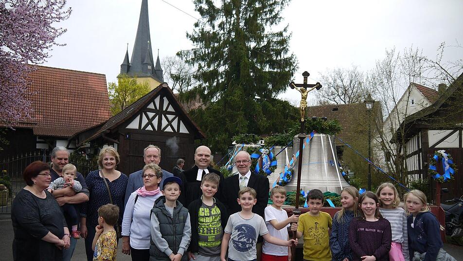 Einen besonderen Moment gab es am Ende des Umzuges unterhalb der Kirche. Dort war noch einmal das komplette große Geläut der alten Glocken zu hören, obwohl diese längst ausgebaut sind. Die Aufnahme kam vom Band, denn in vollem Klang durfte das Gleußener Geläut schon lange nicht mehr schlagen. Aus Sicherheitsgründen musste die große Glocke vor über drei Jahren verstummen.