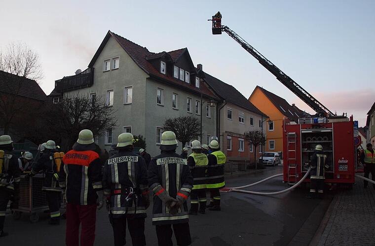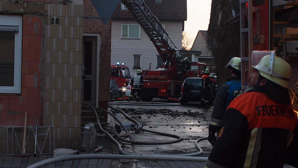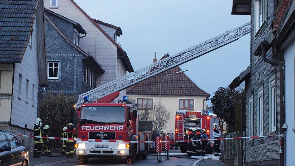 Zahlreiche Rettungskräfte rückten kurz nach 17.30 Uhr in die Heldburger Straße aus. Die Dachstühle der Anwesen mit den Nummern 28 und 30 brannten "lichterloh", wie es in einer ersten Schnellmeldung der Coburger Polizei hieß. Kurz nach 18 Uhr wurde von der Feuerwehr gemeldet: "Feuer unter Kontrolle!"